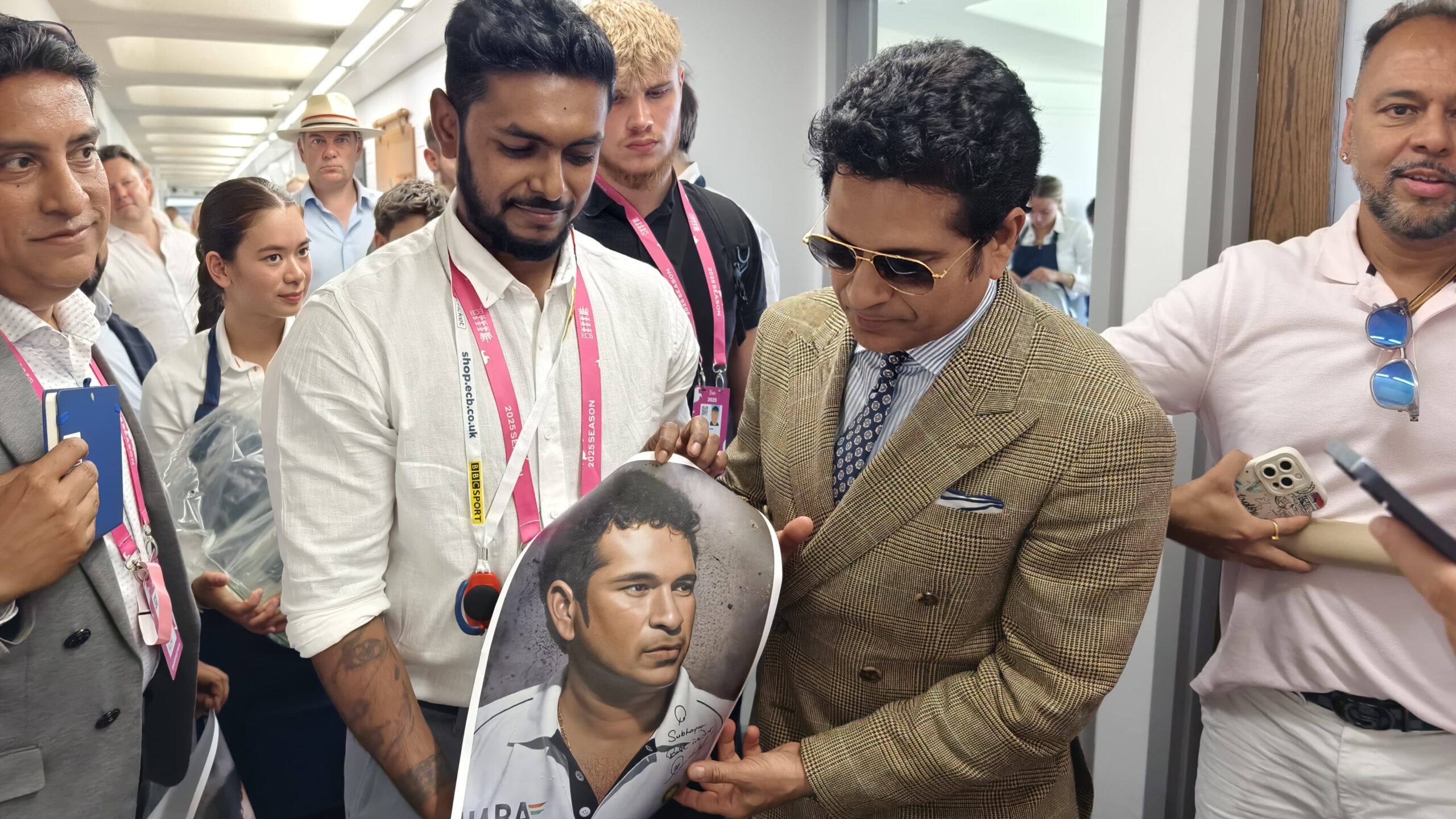 Tendulkar’s cricketing saga is legendary, needing no introduction. But his larger-than-life presence truly hit home when our Editor-in-Chief, Dr Boria Majumdar, whisked me away for an impromptu meeting with the man himself. It was the second session of Day 1, with England plodding along after lunch. Out of nowhere, Boria Da asked, “Got a marker and your phone on you?” Clueless about his plan, I scrambled to find a marker and handed it over. “Come with me,” he said, revealing his mission: to snag a couple of portrait prints from the Lord’s Shop, the same one now hanging in the MCC Museum, and get them signed by Tendulkar. I jumped in, buying one for myself, hoping to get it signed too. “Just get it. He won’t say no,” Boria Da assured me with a grin.
