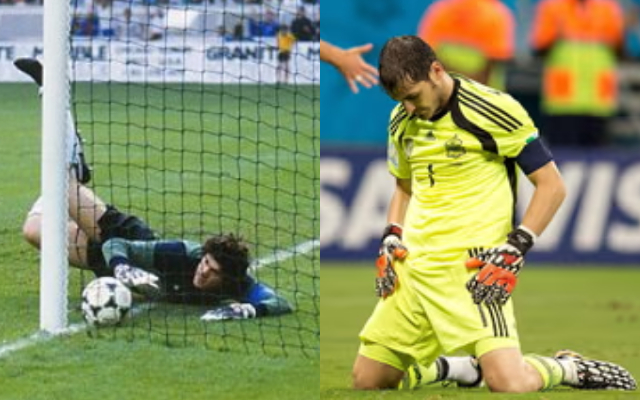 This was one of the few nightmarish outings for Iker Casillas in his illustrious career. Spain, the 2010 FIFA World Cup champions, were the favourites to defend the title in 2014. But the Netherlands took revenge for the 2010 final loss by humiliating them 5-1. Casillas was responsible for four of those five goals due to his miscommunication with the defenders and mistimed, misjudged forays. The fourth goal that he conceded, he failed to control the ball with his left foot and Robin Van Persie snatched it to put it in the back of the net. The Spanish goalie also issued an apology after that disastrous performance.