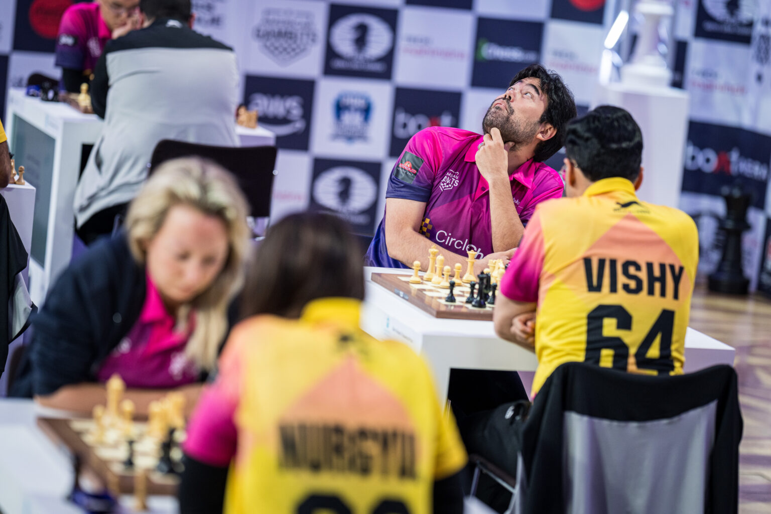 Koneru Humpy and Raunak Sadhwani drew their games. Alireza Firouzja’s win against Maxime Vachier-Lagrave on the top board turned out to be decisive for Triveni Continental Kings in this round. Mumba are fifth with three points.
