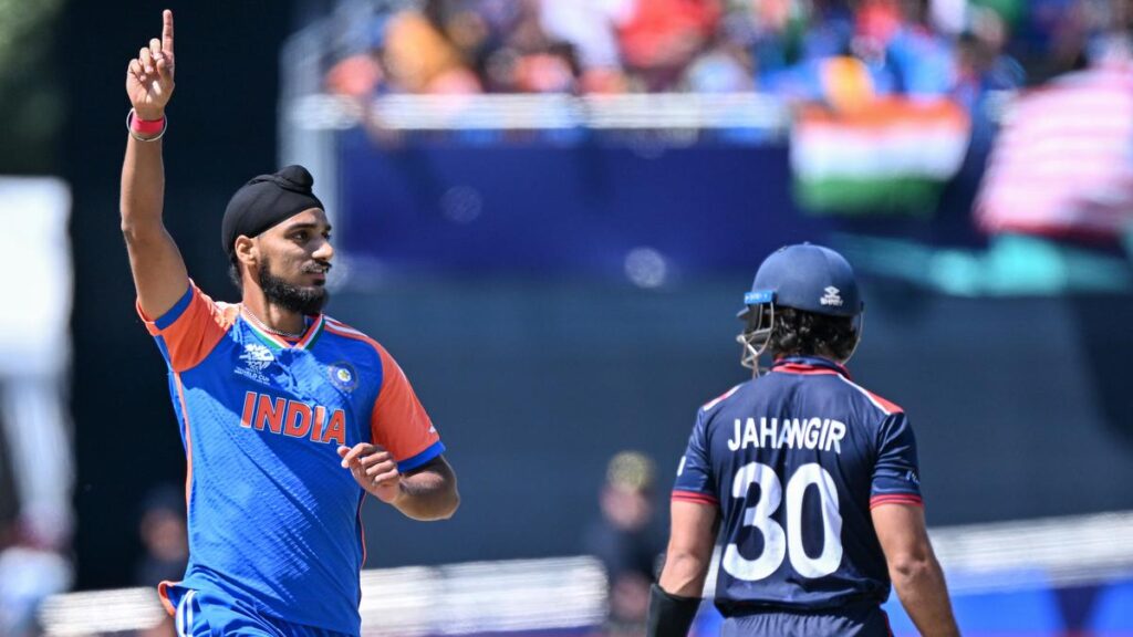 That the United States wouldn’t be pulling off an upset was confirmed in the very first over, when Arshdeep Singh picked up two wickets. The very first ball of the match, after Rohit Sharma won the toss and chose to field, accounted for Shayan Jahangir. In the final delivery of that over, Arshdeep removed Andries Gous. From 3-2, it was always going to be an uphill climb for the hosts to put a decent total on the board. They could only manage 110-8, which India knocked off in 18.2 overs to win by seven wickets and reach Super Eights.