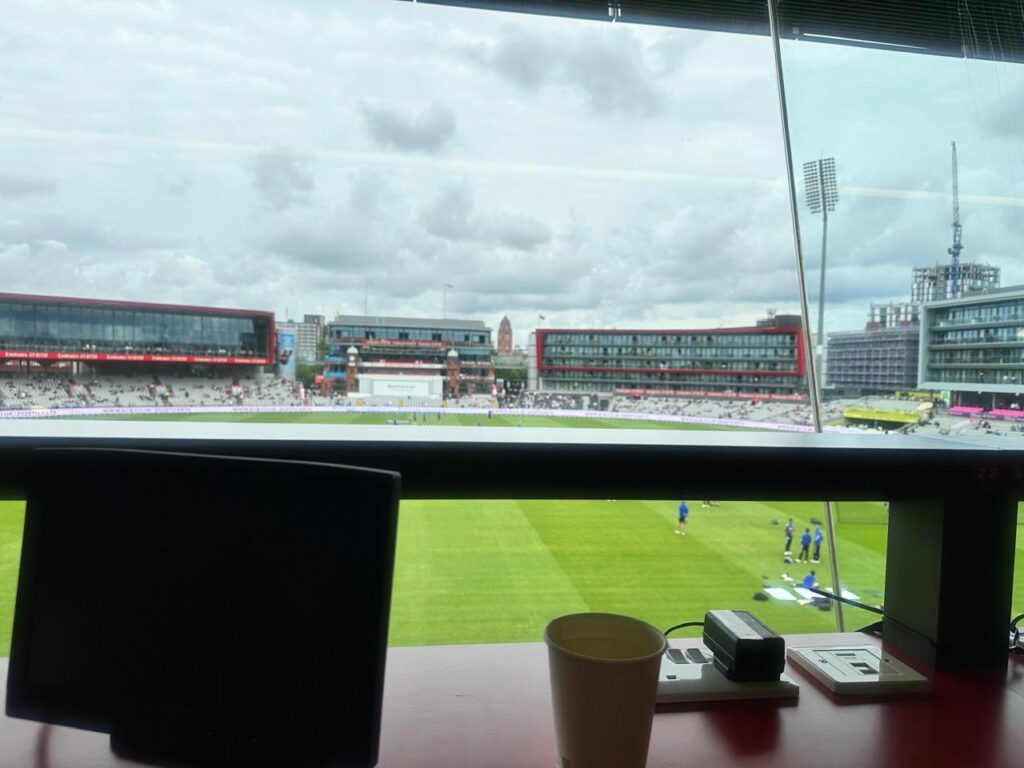 Even now, as I watch the Indian team warm up before the start of play, I’m watching and praying for an umbrella to go up amongst the ground staff, generally our first indicators inside the glass box of any rain.