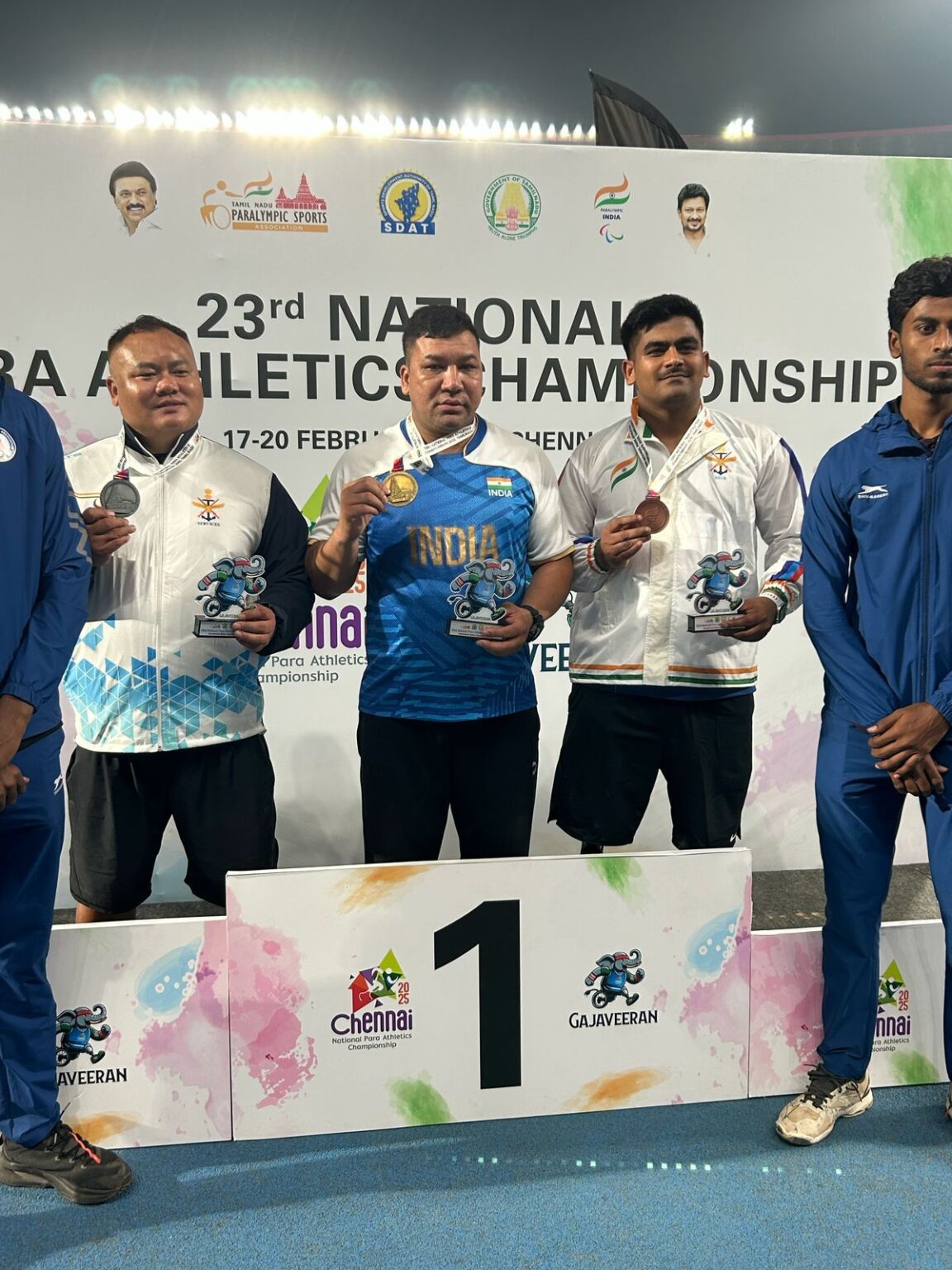 In the men’s F57 shot put, national record holder Soman Rana outperformed Paris Paralympics gold medallist Hokato Sema to claim victory. Rana’s best throw of 14.42m secured him gold, with Sema settling for silver at 13.53m. Shubhan Juyal from SSCB earned bronze with a 13.39m throw.