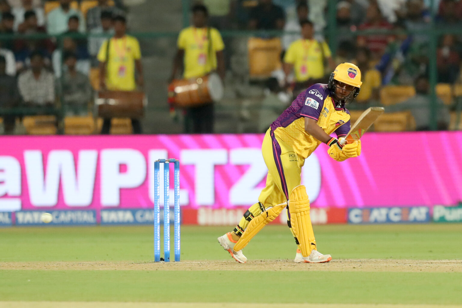 If there’s anything Grace Harris is known for, it’s for finding gaps in the field, hitting big shots and scoring quick runs. That is precisely what the Australian all rounder did tonight as UPW found themselves at the backfoot as Issy Wong scalped two successive wickets, sending both Alyssa Healy and power hitter Tahlia McGrath back to the pavilion. It started raining fours and sixes as Harris connected the ball right and left, taking UPW over the line with her 38* (17) run knock and ensuring the team won its first match of the tournament.