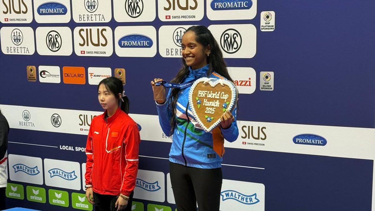 Elavenil Valarivan, two-time Olympian and one of India’s most accomplished women’s air rifle shooters ever, improved one spot on her record at the revered Olympic Shooting range in Munich, clinching a quality bronze on day one of competitions at the year’s third International Shooting Sport Federation (ISSF) World Cup (Rifle/Pistol) stage. Ela bowed out after the 22nd shot of the 24-shot final with a score of 232.1, settling for third place behind gold medal winner Wang Zifei (252.7) of China and silver medalist Eunji Kwon (252.6) of Korea.