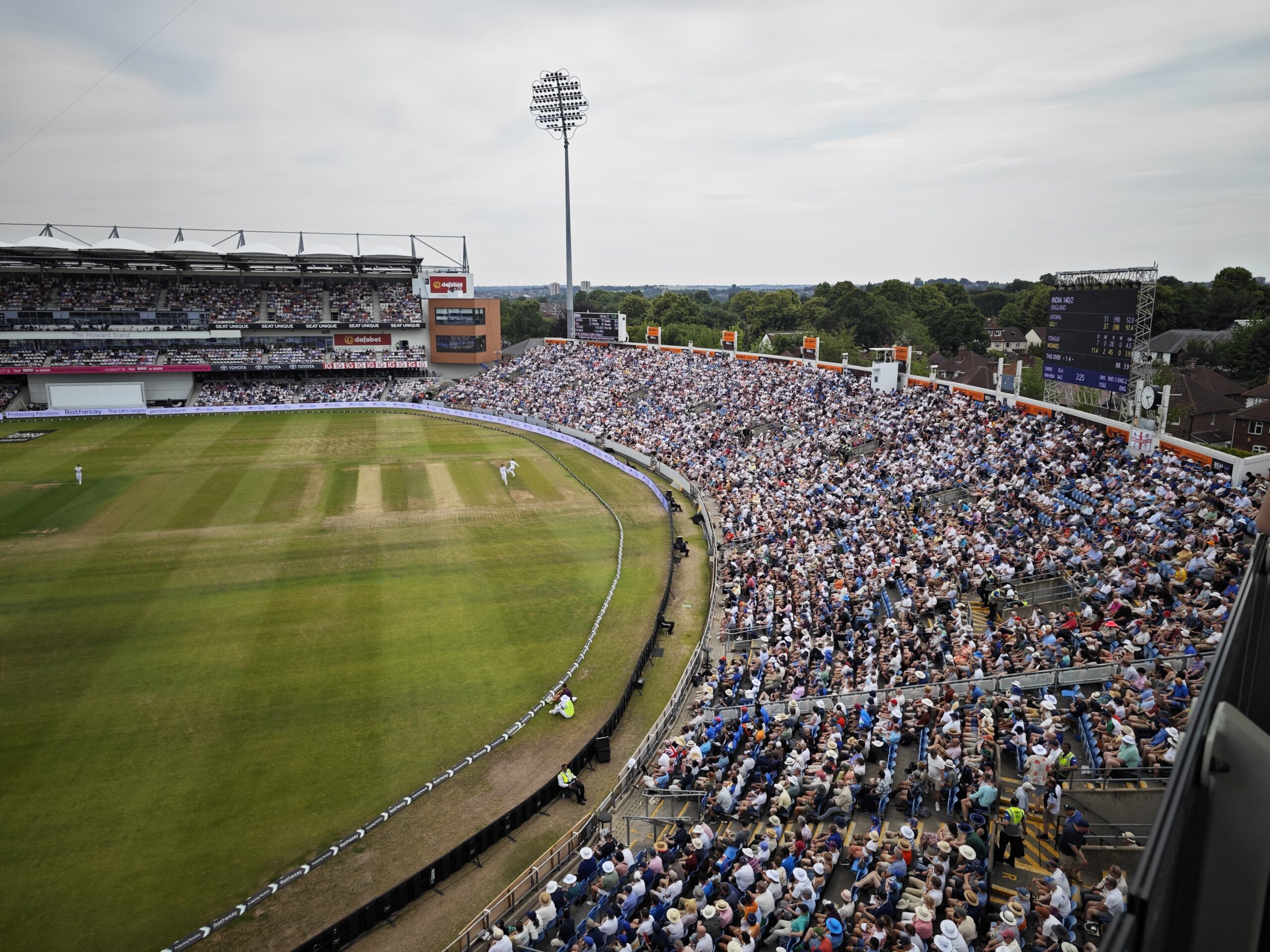 It’s a packed house here in Leeds as India approaches tea in the first Test of the series against England. The crowd is soaking in the Friday afternoon, with the sun playing along pleasantly — unlike yesterday, which was scorching.