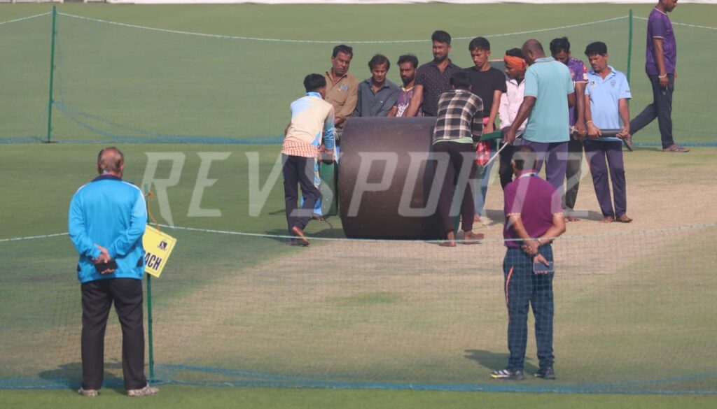 The coaches were the first to arrive on the field, and head coach Gautam Gambhir immediately signalled Sitanshu Kotak to have a look at the pitch. Joined by bowling coach Morne Morkel, the three members of the Indian management spent about 10 minutes inspecting the surface, with Gambhir later staying back to have a long chat with pitch curator Sujan Mukherjee.
