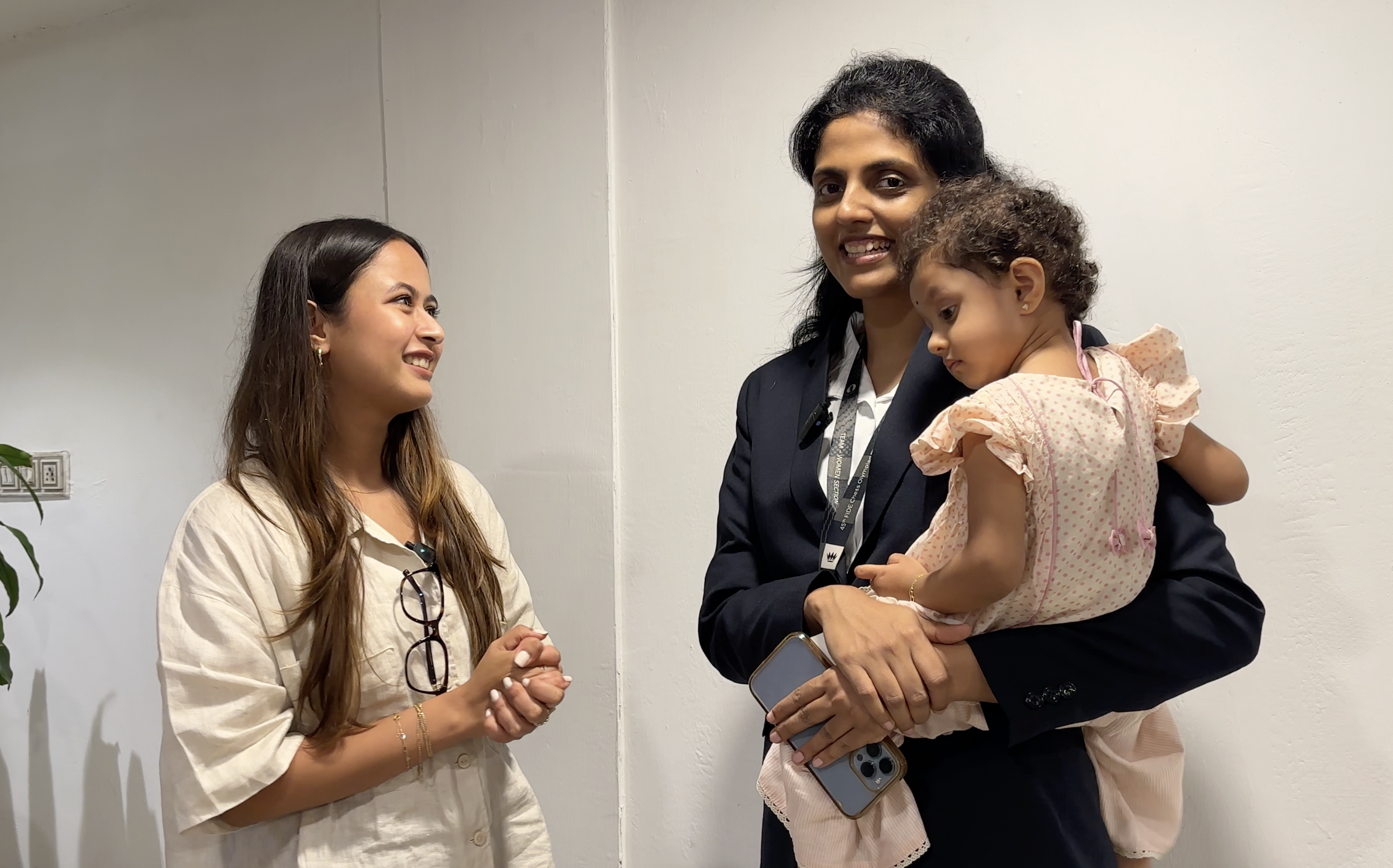 Later, when I caught up with her, right before we started the interview,Harika requested me to wait five minutes so she could go check on her daughter and come back. Keeping her promise, the grandmaster showed up to complete the interview with her daughter in arms. Harika’s composure revealed the true story behind her golden success, a story of balancing dreams, motherhood, and judgement.