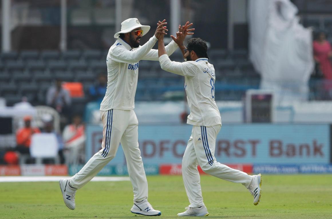 Rahul and Jadeja celebrating a wicket. Source (X)