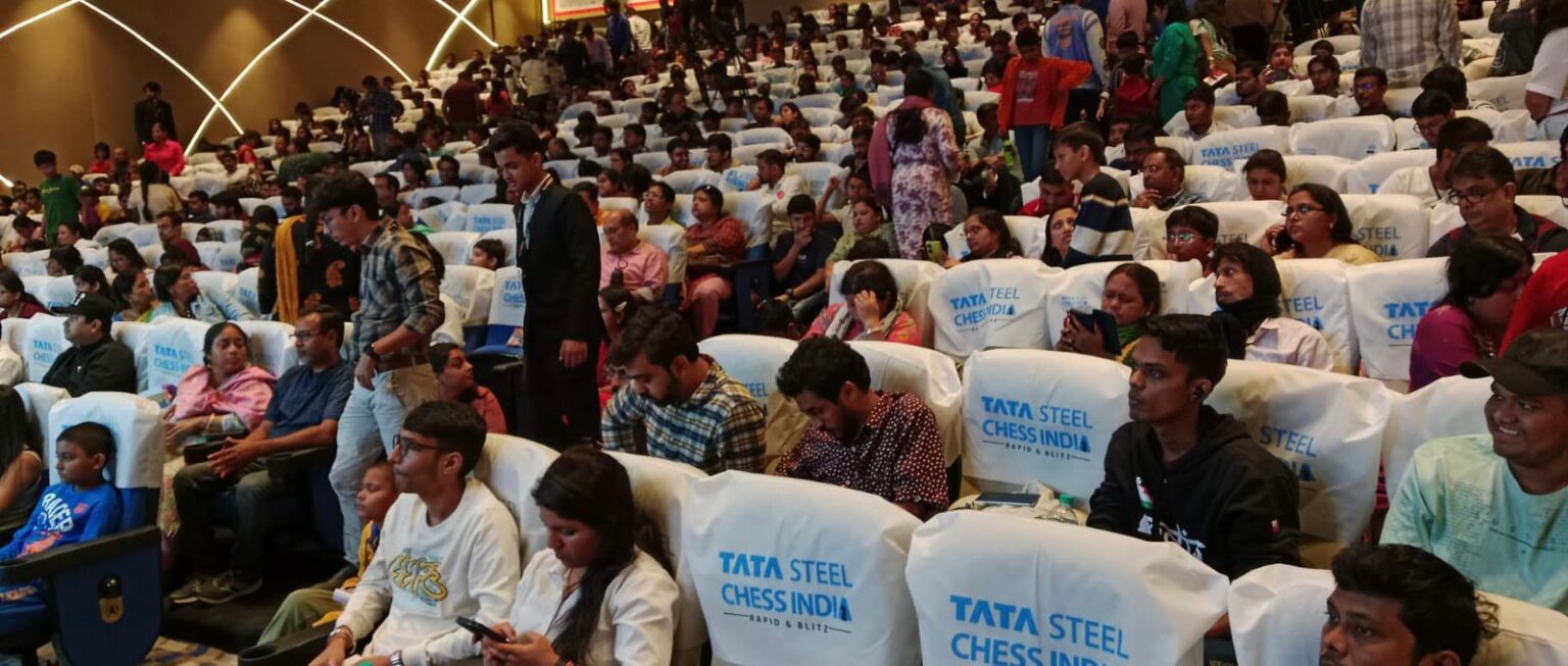 The auditorium which seats around 550 was almost full for the second day running. Mostly school children who play chess and their parents were in attendance. In chess, the crowd isn’t permitted to speak or make any sort of noise. Mobile phones have to be on silent mode. So, the presence of so many didn’t violate decibel norms. But, they made for a great sight.