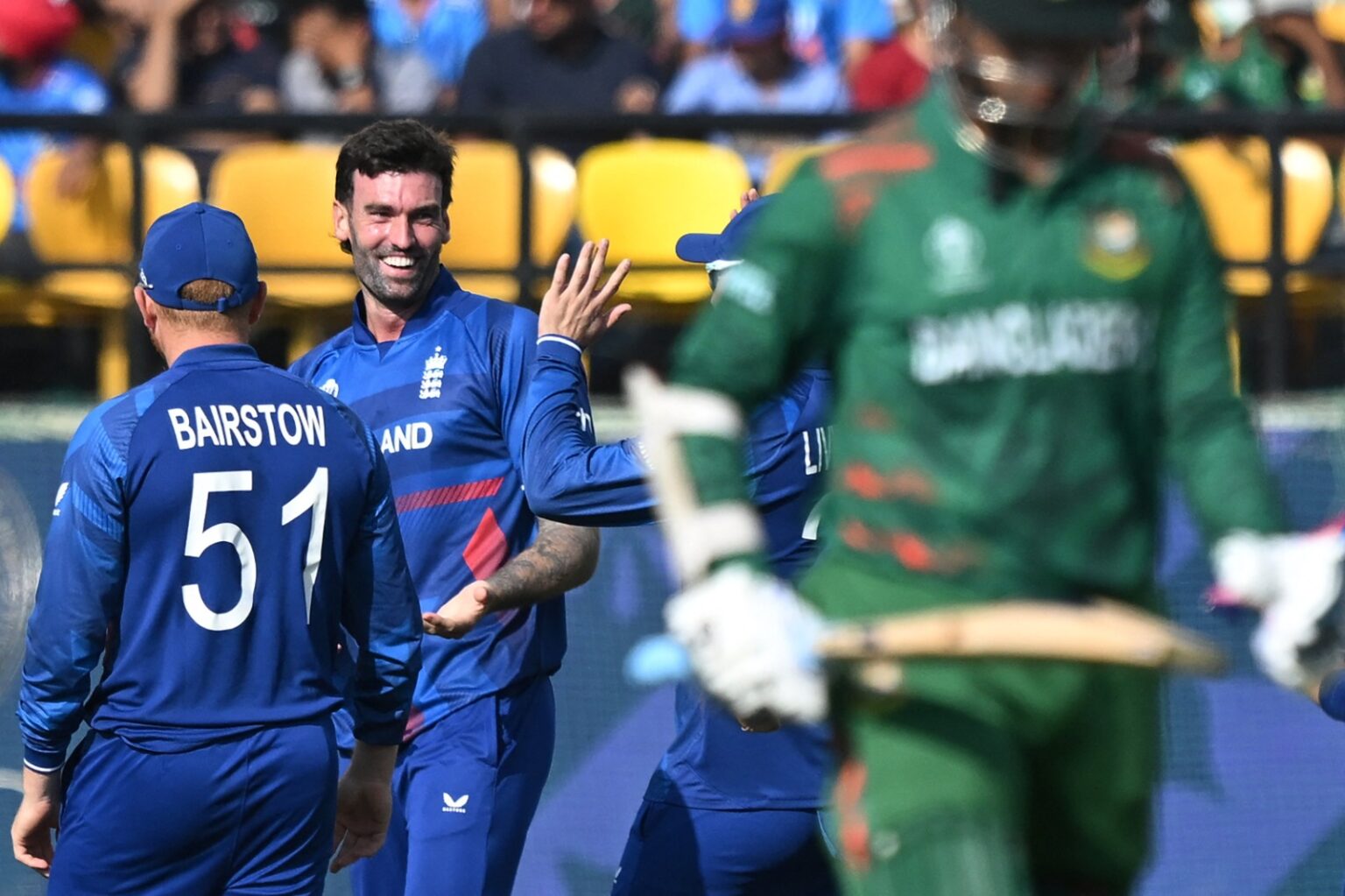 England’s huge win was built on the performances of two players – Topley (4-43) and Dawid Malan (140). The 6’7″ Topley, who was inexplicably left out of the opening game against New Zealand, snuffed out Bangladesh’s small window of opportunity to chase down a monstrous target in his first over itself. The fourth ball of that over was back of a length and seamed away as Tanzid Hasan could only edge it to the slip cordon. Najmul Shanto was then dismissed for no score, caught at backward point. This time, a hint of swing did the trick for Topley.