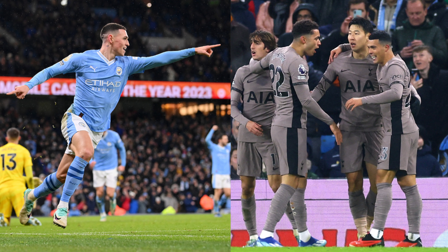 A scintillating game of football at the Etihad that had everything, from goals to frayed tempers and last-second drama. Son Heung-min opened the scoring for Spurs and then put the ball past his own keeper to give City parity. Phil Foden then scored for City with a superb quickfire passing move before the break, and the home side had enough chances to be out of sight. Instead, Ange Postecoglou rang the changes at half-time, and an inspired Spurs equalised through Giovani Lo Celso’s sublime finish in the 69th minute. Jack Grealish, scoring for the first time in 27 games, looked to have earned City a precious three points, but Tottenham, who have an excellent recent record at the Etihad, would not be denied. Dejan Kulusevski rose above Nathan Ake to head in a left-wing cross – via the shoulder – in the 90th minute, and a late City breakaway was thwarted by the refereeing blowing for an earlier foul, much to Pep Guardiola’s consternation.