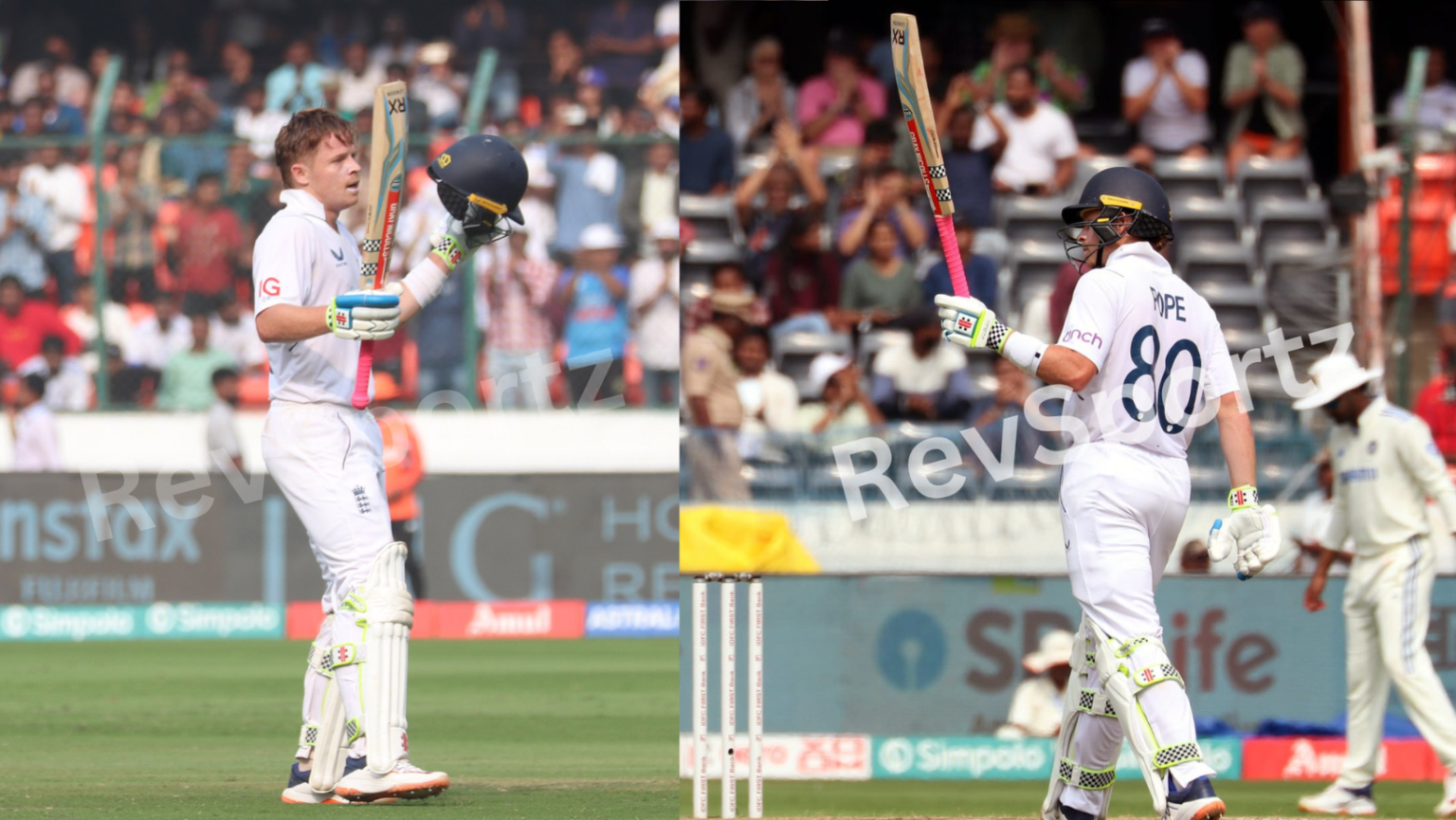 Pope continued England’s strategy of using sweeps and reverse sweeps, alongside the occasional flick shot. On the other hand, Foakes was more intent on defending off the front foot. Pope also reached his hundred with a whip off Jadeja in the 61st over. The Hyderabad crowd aptly gave him a standing ovation. Axar Patel, who fluffed a chance off Pope, ultimately broke the partnership by castling Foakes. Rehan Ahmed and Pope then steered the side to stumps, putting on a handy association of 41.