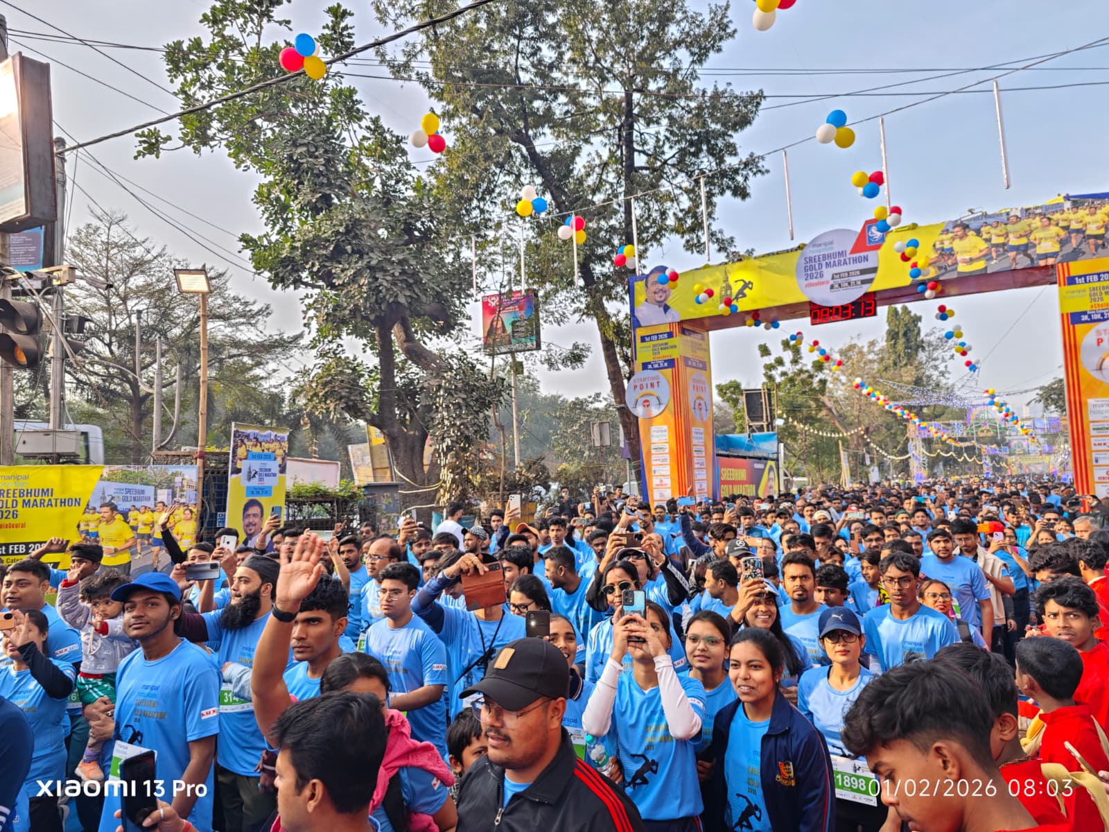 The fourth edition of the Manipal Hospitals Sreebhumi Gold Marathon 2026 witnessed massive participation, reaffirming its position as one of the biggest road running events in the region. Organised by the Sreebhumi Sporting Club under the aegis of Sri Sujit Bose, MLA, Bidhannagar, and President of the Sreebhumi Sporting Club, the marathon drew more than 10,000 participants across categories.