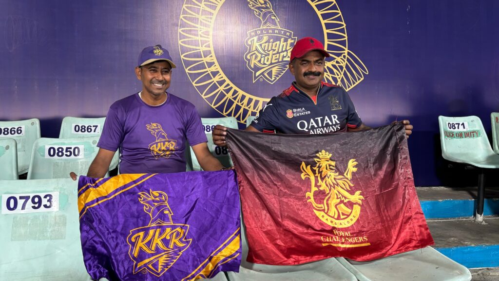 Royal Challengers Bengaluru has one of the most loyal fanbases in the world. Sugumar in particular exemplifies the point. You may have seen him on the screen in every RCB match, with a feathered headgear and face-painted crimson. On the eve of the IPL 2025 opening game between KKR and RCB. The franchise’s two superfans – Ashok and Sugumar – were in the stands, waving their flags, chanting their slogans and catching the attention of other fans. The two superfans are celebrities in their own right. As fans spotted them, they queued up to get pictures with the two.