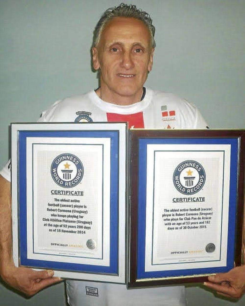 Having debuted in 1976, at 14, Robert Carmona, of Uruguay, at 63, is the oldest active footballer in the world and is recognised by the Guinness World Records for achieving this feat.