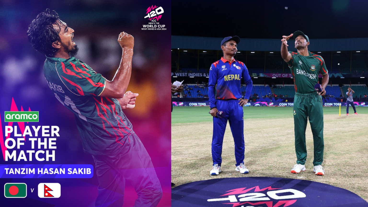 Bangladesh held their nerve to usurp Nepal in a keenly-contested ICC T20 World Cup game by 22 runs in St Vincent. Nepal finished with 85 as they looked to overhaul the target of 108. On the back of this victory, Bangladesh are through to Super 8s.
