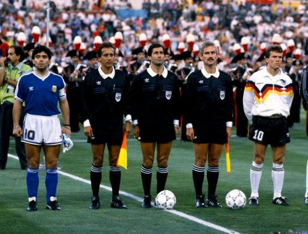 In 1990, the iconic Argentina versus Germany final, saw the Trifoil logo on both sides. One of Germany’s most iconic World Cup shirts had the Trifoil logo for the last time, as Lothar Matthäus lifted the World Cup, and made way for the Mountain logo and the symbolic Three-Stripes on the sleeves.