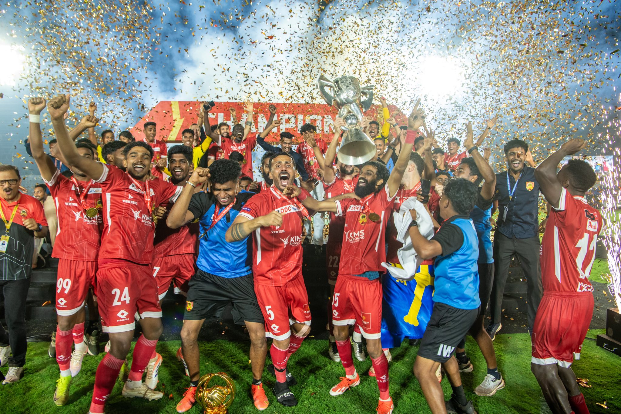 The final, played at Kannur Warriors’ Jawahar Stadium, provided an intense spectacle with the home team, who barely scraped into the last four, holding out for a 1-0 victory despite playing the entire second half with just 10 men. The official estimate was that the attendance was 21,000, with two of the stands not really fit for purpose. But every video or pictures you see would suggest that far more people had somehow found a way to squeeze in.