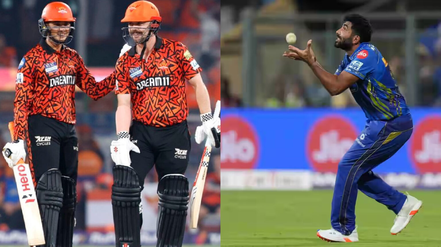 (Left)Abhishek Sharma and Travis Head. Image Twitter/X. (Right) Jasprit Bumrah. Image BCCI/IPL