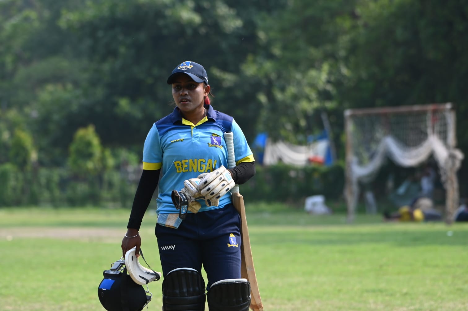 Jhumpa Roy, a senior Bengal cricketer, shared her thoughts about this achievement and the future of women’s cricket. Jhumpa trains at the Ashoknagar Sheba Samiti Cricket Academy and resides in the Ashoknagar-Banipur area. There, she teaches young children, both boys and girls, along with her father, in addition to her own practice.