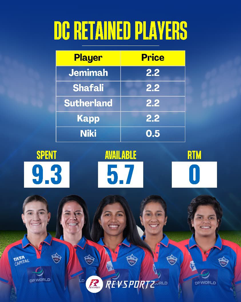 The Delhi Capitals have announced one of the most intriguing retention lists of this WPL cycle, keeping faith in five players, Jemimah Rodrigues (₹2.2 crore), Shafali Verma (₹2.2 crore), Annabel Sutherland (₹2.2 crore), Marizanne Kapp (₹2.2 crore), and young wicketkeeper-batter Nikki Prasad (₹50 lakh). The headline, however, is what’s missing, no Meg Lanning. The captain who led them to three consecutive finals is no longer part of the setup.